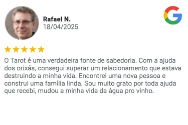 Com a minha orientação, você será capaz de encontrar soluções para questões de amor, prosperidade e bem-estar, sempre com respeito e responsabilidade espiritual.